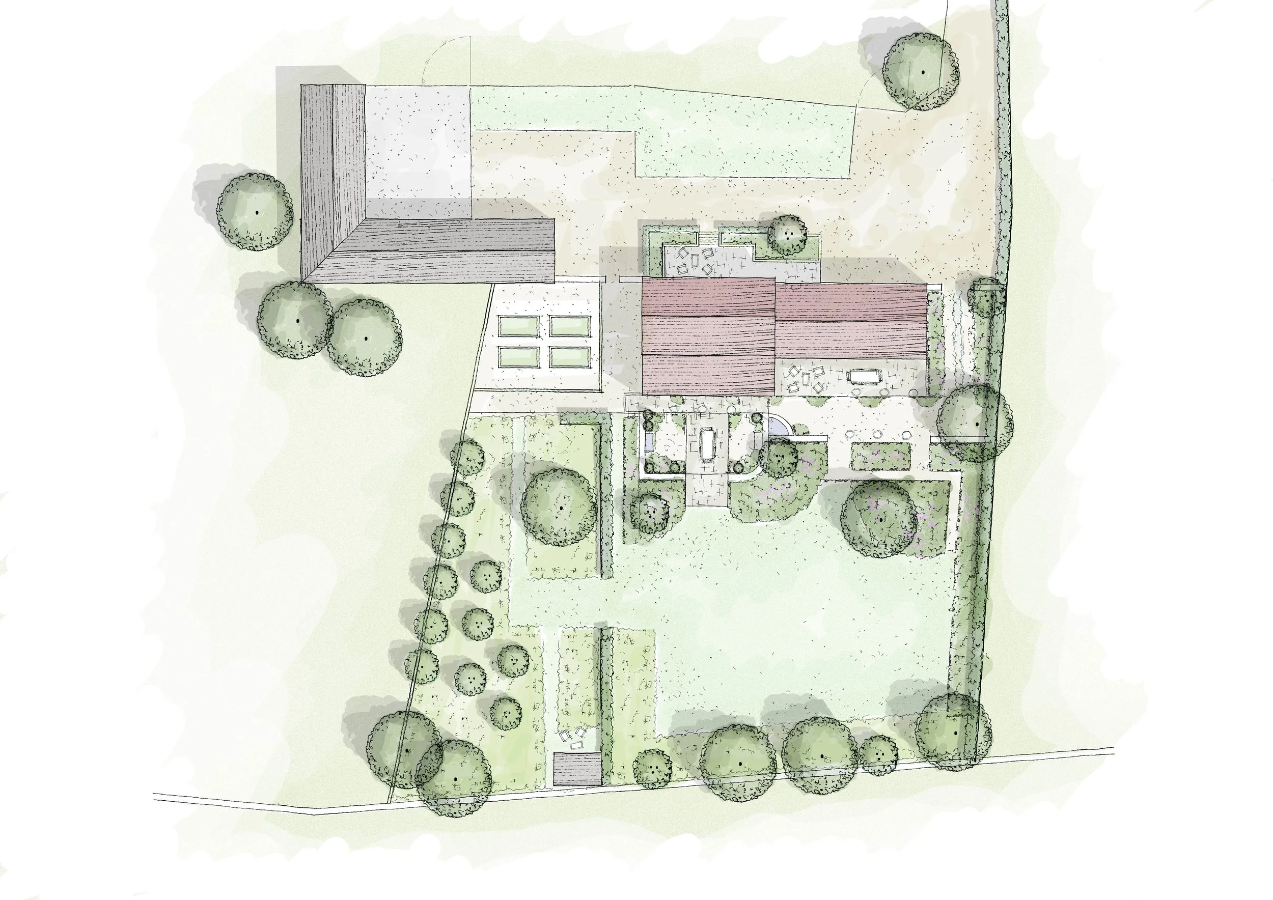 For small to medium gardens, we can carry out the site survey ourselves. On larger or more complex sites, we recommend a topographic surveyor to provide detailed measurements. We then analyse the site, gathering information on levels, drainage, circulation, and views to ensure the design responds naturally to its environment.